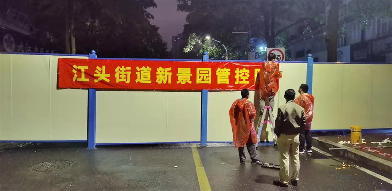 公司成立多支防疫突击队,深入动员全体员工积极参与抗疫志愿活动,贡献绵薄之力,共克时艰。20日23点,公司接到湖里区建设局紧急支援抗疫的指令——“快、严、细”完成吕厝路西端、江头西路、冠宏花园、新景园等多处围挡封闭施工任务。公司迅速响应集结,从五缘映月、南山学校等项目调配抗疫物资,突击队员们雨夜出征鏖战。